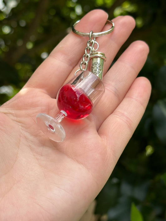 Oversized wine Bottle Keychain with Metal Bottle Charms