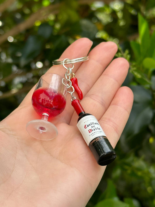 Oversized Wine Bottle Keychain – Includes Wine Glass Earrings and Red Pepper Charm