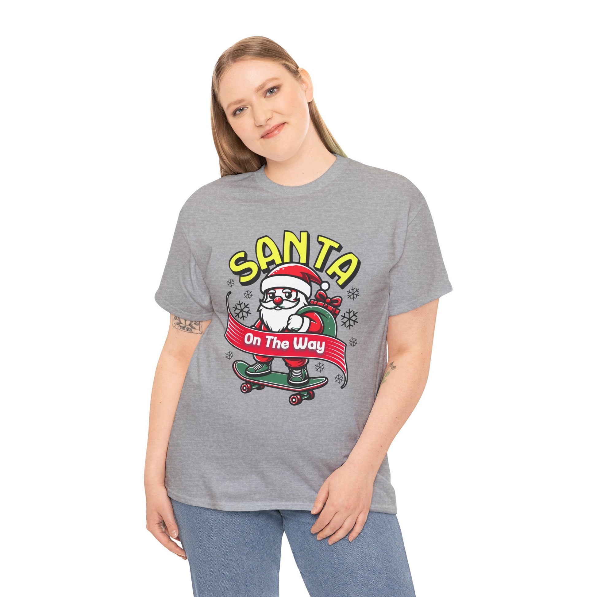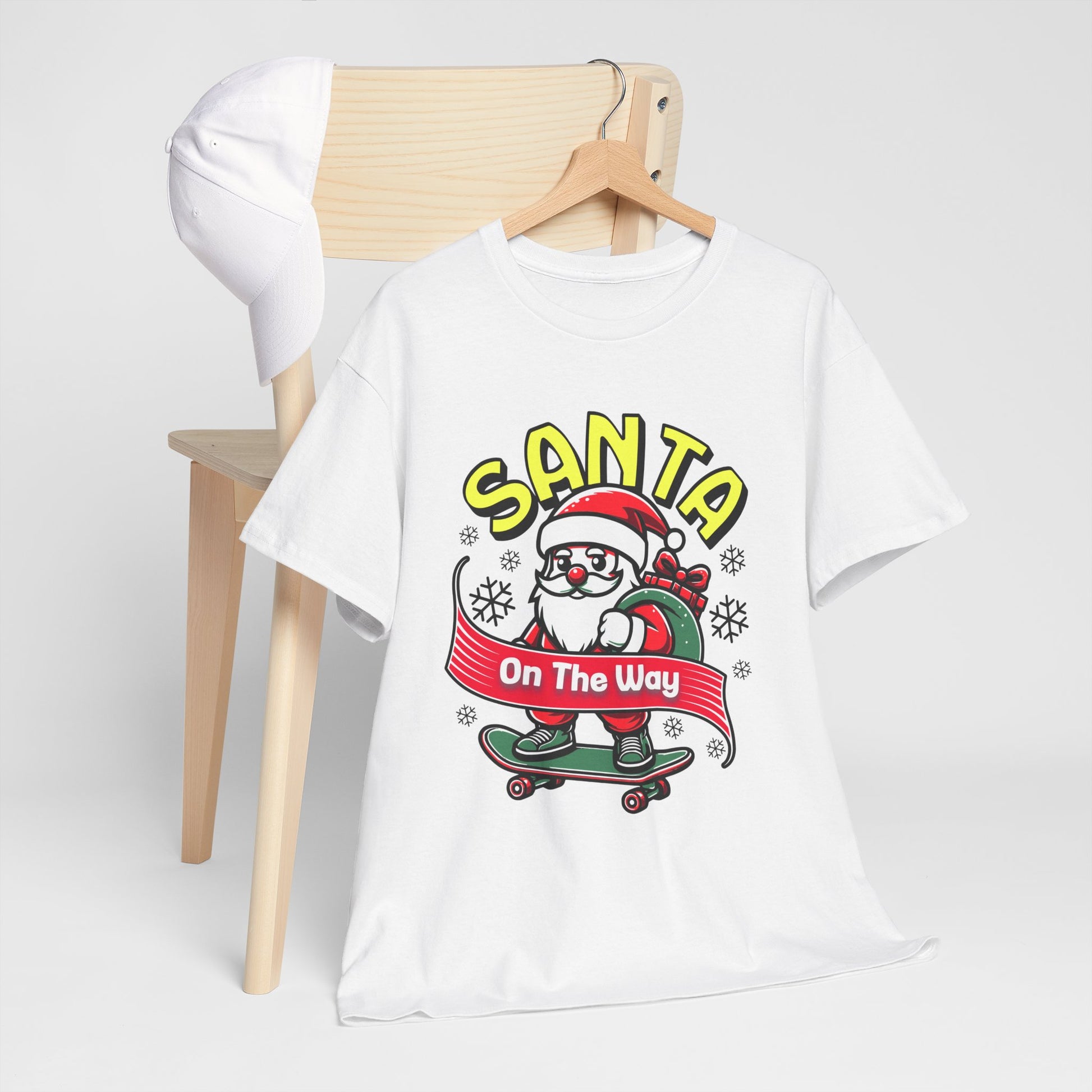 Santa T-Shirt On The Way Skateboard Tee, Merry Christmas