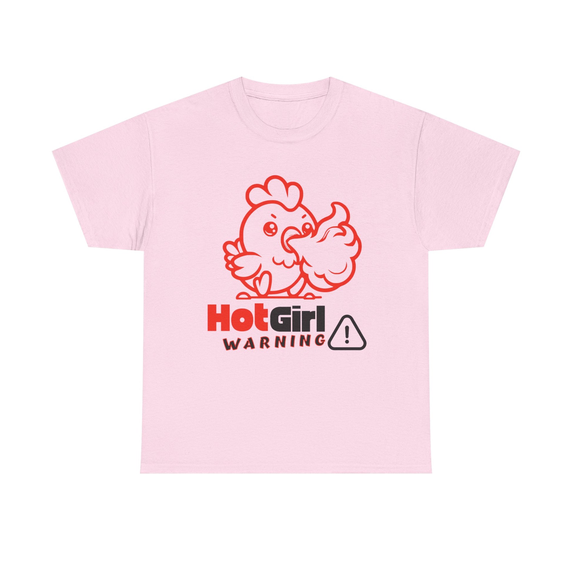 Bring bold attitude to your everyday look with this playful graphic tee. The front features a cute cartoon hen and “Hot Girl Warning,” while the back brings the confidence with a big, cheeky “WOKE UP SEXY AGAIN.” Soft, comfortable cotton and a relaxed fit make it an easy go-to for errands, weekends, or anyone who loves fun statement shirts.
